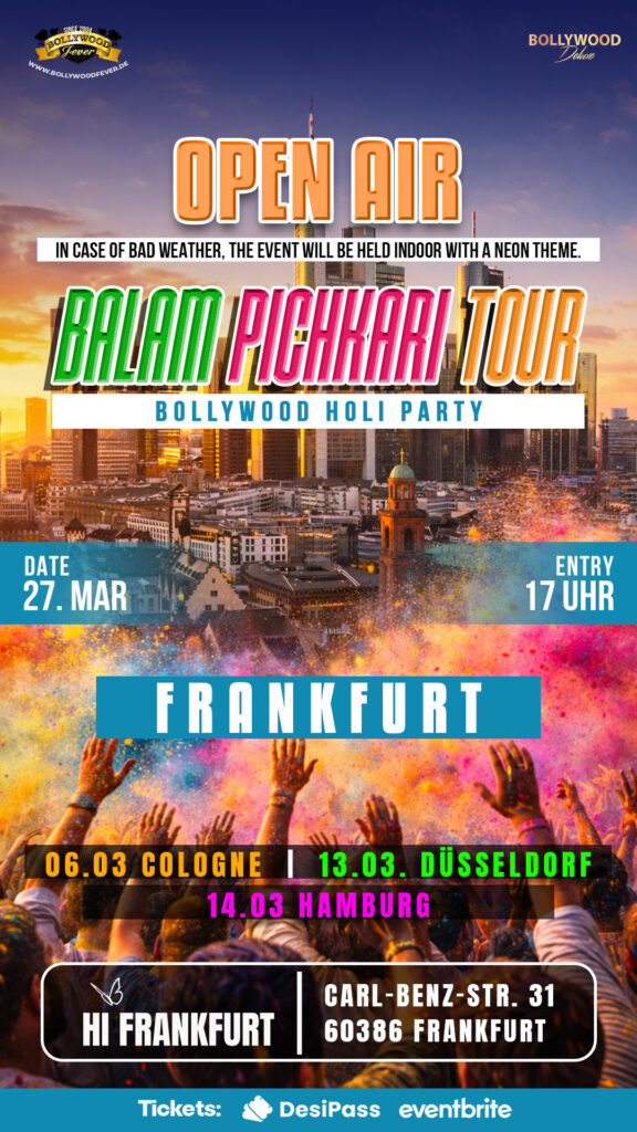 Feier mit uns die heißeste Bollywood-Holi open Air Party in Frankfurt- eine Nacht voller indischer Musik, Tanz Holi mit Farben und Spaß!